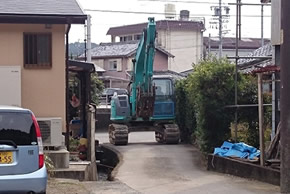 現地調査では、解体する建物だけではなく重機や車両の搬入経路も調査いたします。