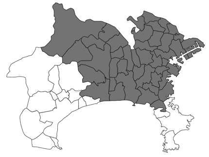 横浜市、川崎市、座間市、相模原市、厚木市、大和市、伊勢原市、海老名市、寒川町、平塚市、藤沢市、茅ヶ崎市、鎌倉市、逗子市、愛川町、綾瀬市、伊勢原市